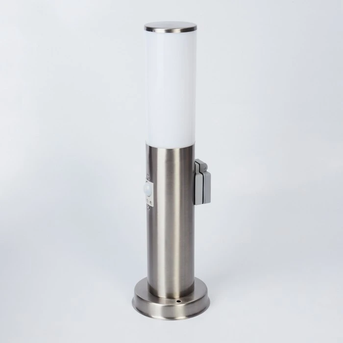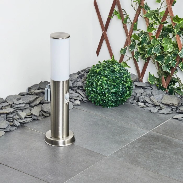In diese Leuchte ist eine Steckdose mit Schutzabdeckung integriert.