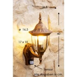 Hofstein Außenwandleuchte Ribadeo Braun, Gold, 1-flammig, Bewegungsmelder