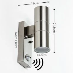 Hofstein Brachy Außenwandleuchte Edelstahl, 2-flammig, Bewegungsmelder