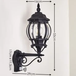 Hofstein Außenwandleuchte Caldes Schwarz, 1-flammig, Bewegungsmelder